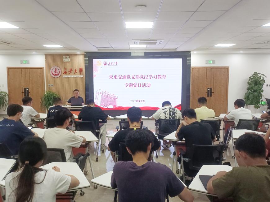 为深入开展党纪学习教育,学习贯彻习近平总书记关于党纪学习教育的重要讲话和重要指示精神,加强党的纪律建设,提高党员政治素养,推动全面从严治党向纵深发展,5月17日晚,未来交通党支部在北校区朝晖园学生社区示范性园区团体辅导室开展党纪学习教育主题党日活动。未来交通党支部组织委员刘志兴、支部全体学生党员参与。活动由学生党员季书贤主持。