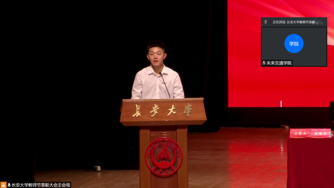 2020级本科生董帅均代表长大学子向全校教师表达了感谢和节日祝愿。