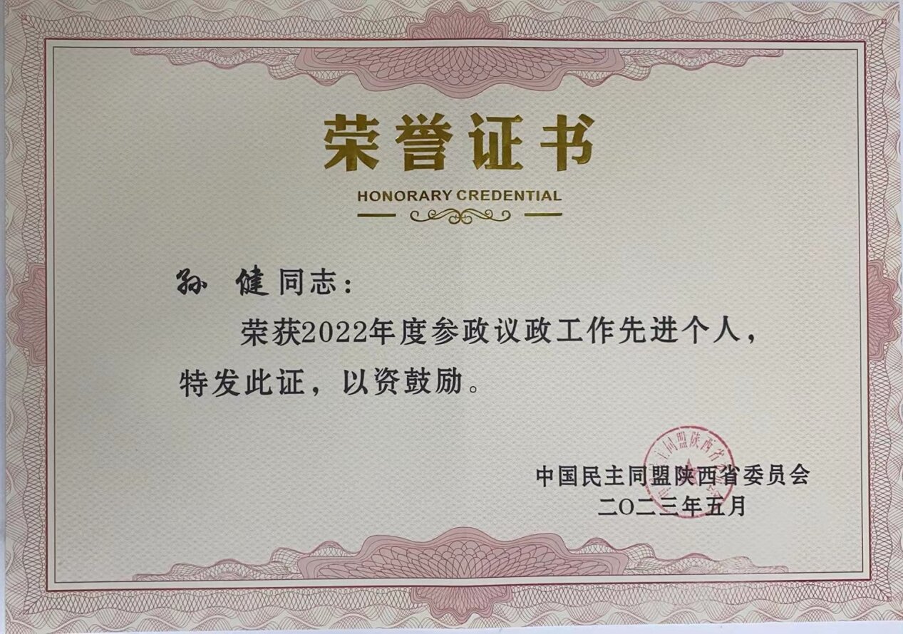 执行院长孙健教授荣获“民盟陕西省委2022年度参政议政工作先进个人”称号。按会议安排,孙健作为先进个人代表以“传承党派基因,牢记历史使命,让参政议政成为一种信仰和习惯”为题向与会人员分享交流自身参政议政工作经验。