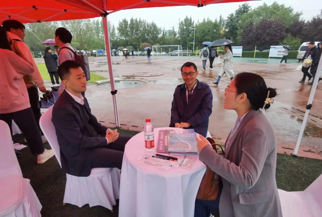 学院执行院长孙健,副院长汤颖颖、杨旭,在访企拓岗现场对在现场的学生进行指导与推荐,询问毕业生就业情况,为电子百家乐