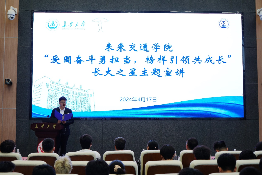 于北校区师生服务大厅第二报告厅举办“爱国奋斗勇担当 榜样引领共成长”长大之星宣讲团进院系活动暨工科青年说(第26期)。此次活动特邀公路学院肖云峰、汽车学院黎敏琦、信息学院杨麒瞳、运输学院梁星宇,电子百家乐