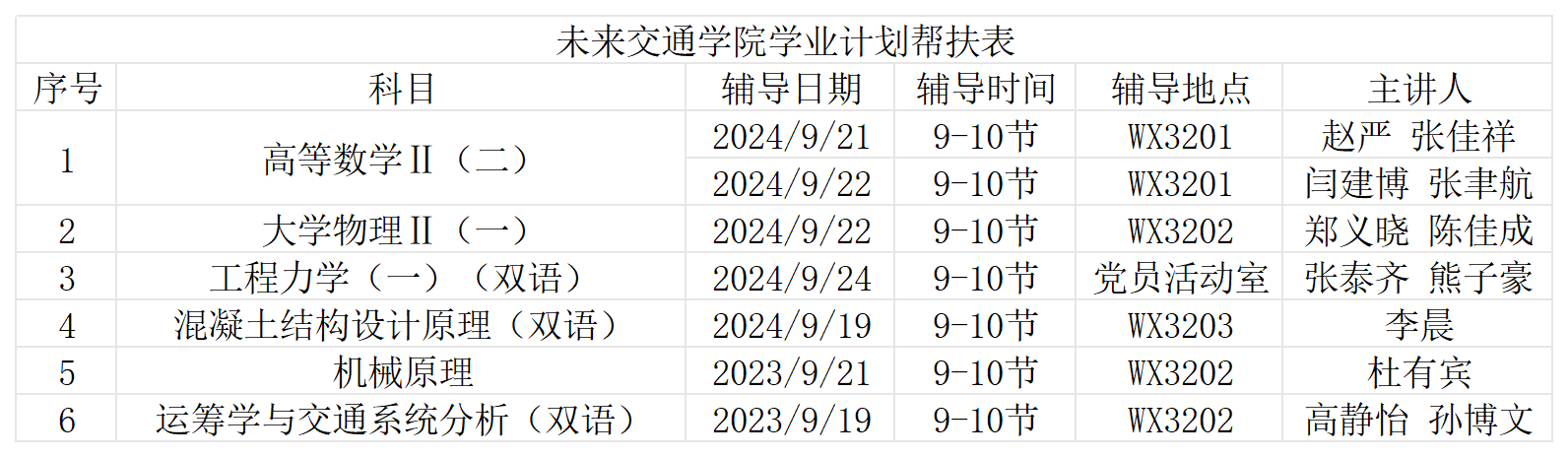 本科生学业预警与帮扶办法(试行)》等文件精神,结合实际情况,针对2022级、2023级各专业上一学期的重难科目,开展本学期补考前集中学业帮扶工作。