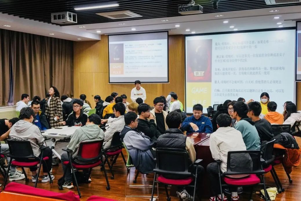 活动由三个环节组成:话剧表演、游戏“The Werewolf”以及Free Talk。在话剧表演环节中,同学们积极踊跃地登台,以饱满的热情和活力演绎了一场全英文的话剧。这不仅锻炼了他们的口语表达能力,还有效地促进了彼此间的友谊关系。