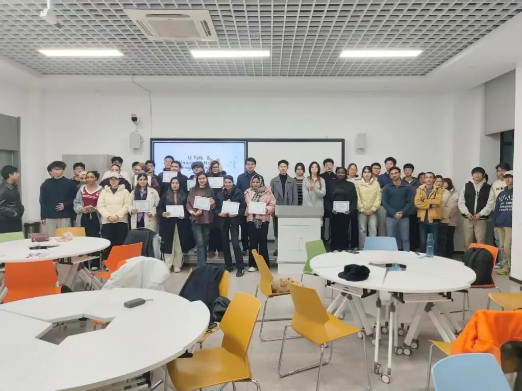 最后的Free Talk环节以“AI”为主题展开交流。从日常的学习到前沿的AI模型,同学们系统分享了各自在AI伦理、数据治理与算力减排方面的实践案例与未来愿景。在这场跨文化交流中,不同文化背景的参与者进一步明确了携手构建安全、普惠、可持续数字生态的责任与信念。