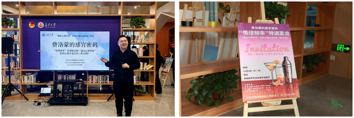 “情绪频率”特调宴会暨“遇见心理学家”系列心理沙龙活动(第20期)之“费洛蒙的感官密码”在北校区鸿渐园“一站式”学生社区青年会客厅举行。百家乐娱乐