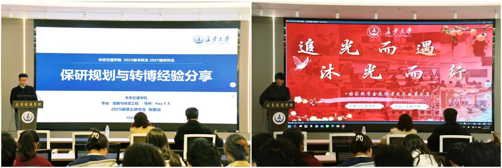 2025级博士研究生张鹏远,围绕学院本研贯通培养模式特色展开分享,结合自身从本科到博士的深造经历,从学习方法优化、科研进度统筹、升学选择筹备等方面进行细致讲解,为本科生搭建学业进阶路径、科学规划个人发展提供了实用思路与具体方法。2023370103班张佳祥结合自身学习科研实践经历分享心得,从课程学习技巧、学科竞赛备赛等角度,讲述了自己的学习体会与实践收获,以身边的鲜活案例为同学们树立了可学可鉴的学习榜样,让大家在学业规划上有了更直观的参考。