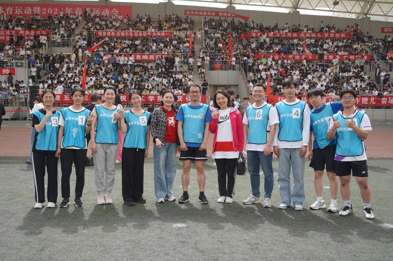 运动会期间,院领导全程观赛,为即将上场的运动健儿们加油鼓劲,详细了解志愿者们的现场工作情况。看台上,老师们和同学们一起喊出“未来交通,加油”,鼓舞士气。比赛中,老师们矫健的身姿也出现在赛场的各个角落,与同学们一起并肩作战!值得一提的是,在本次运动会中,院领导项目荣获第二名两项、第四名一项、第六名一项、第七名一项,创历史新高。